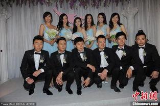 伴郎团的穿搭也是一大看点。在李晨和范冰冰的婚礼上,伴郎团选择了黑色西装,简约而不失大气。其中,伴郎团成员陈赫的黑色领带搭配白色衬衫,显得格外帅气。而伴郎团成员王祖蓝则选择了红色领带,为整体造型增添了一抹亮色。